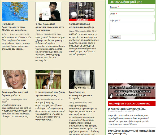 Το blog του Παρατηρητηρίου Σεισμών ανανεώθηκε και καθημερινά οι αναγνώστες της ηλεκτρονικής μας εφημερίδας zougla.gr μπορούν άμεσα να ενημερώνονται, να παρακολουθούν διαδραστικούς χάρτες και σεισμογράφους ανά περιοχή και να παραθέτουν τις ερωτήσεις τους, όσον αφορά τη σεισμική δραστηριότητα στη χώρα μας.