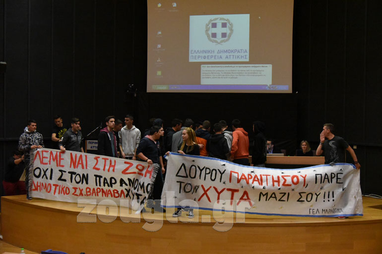 Στη δυναμική παρέμβαση συμμετείχαν και μαθητές, οι οποίοι για λίγη ώρα «κατέλαβαν» το βήμα: