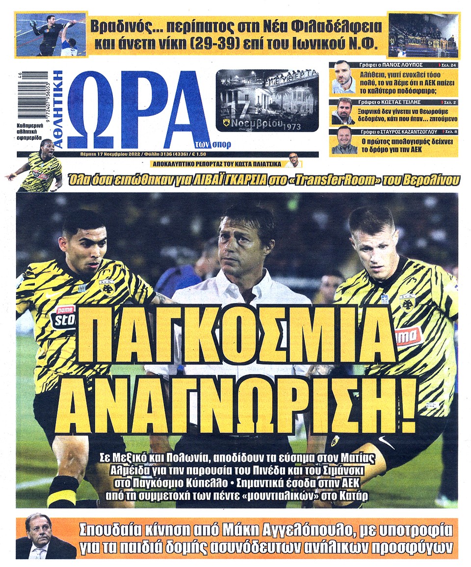ΑΘΛΗΤΙΚΗ ΩΡΑ ΤΩΝ ΣΠΟΡ - 17 Νοεμβρίου 2022
