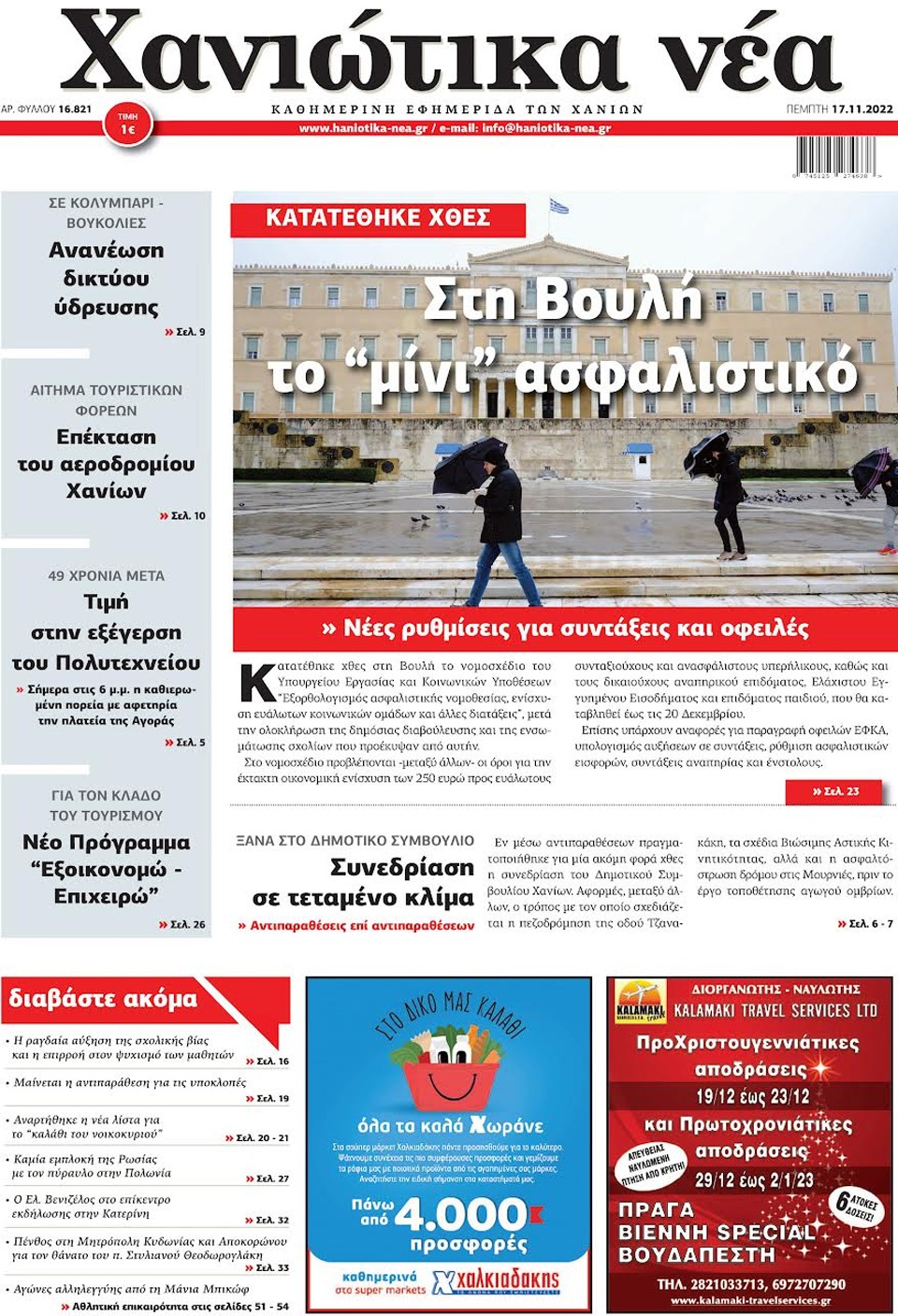 ΧΑΝΙΩΤΙΚΑ ΝΕΑ - 17 Νοεμβρίου 2022