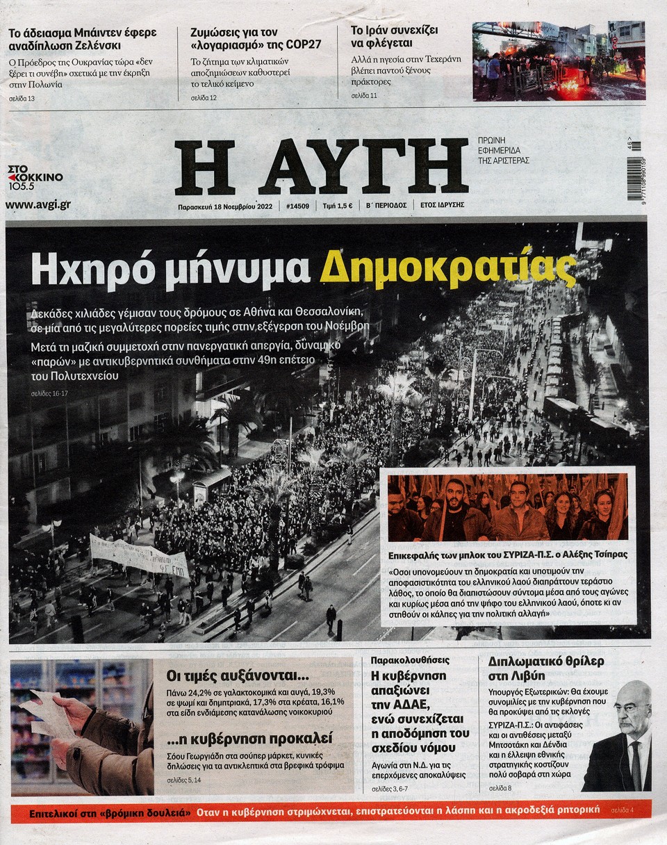 Η ΑΥΓΗ - 18 Νοεμβρίου 2022