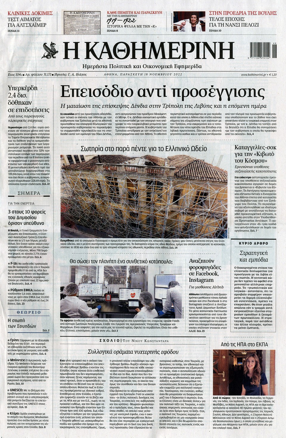 ΚΑΘΗΜΕΡΙΝΗ - 18 Νοεμβρίου 2022