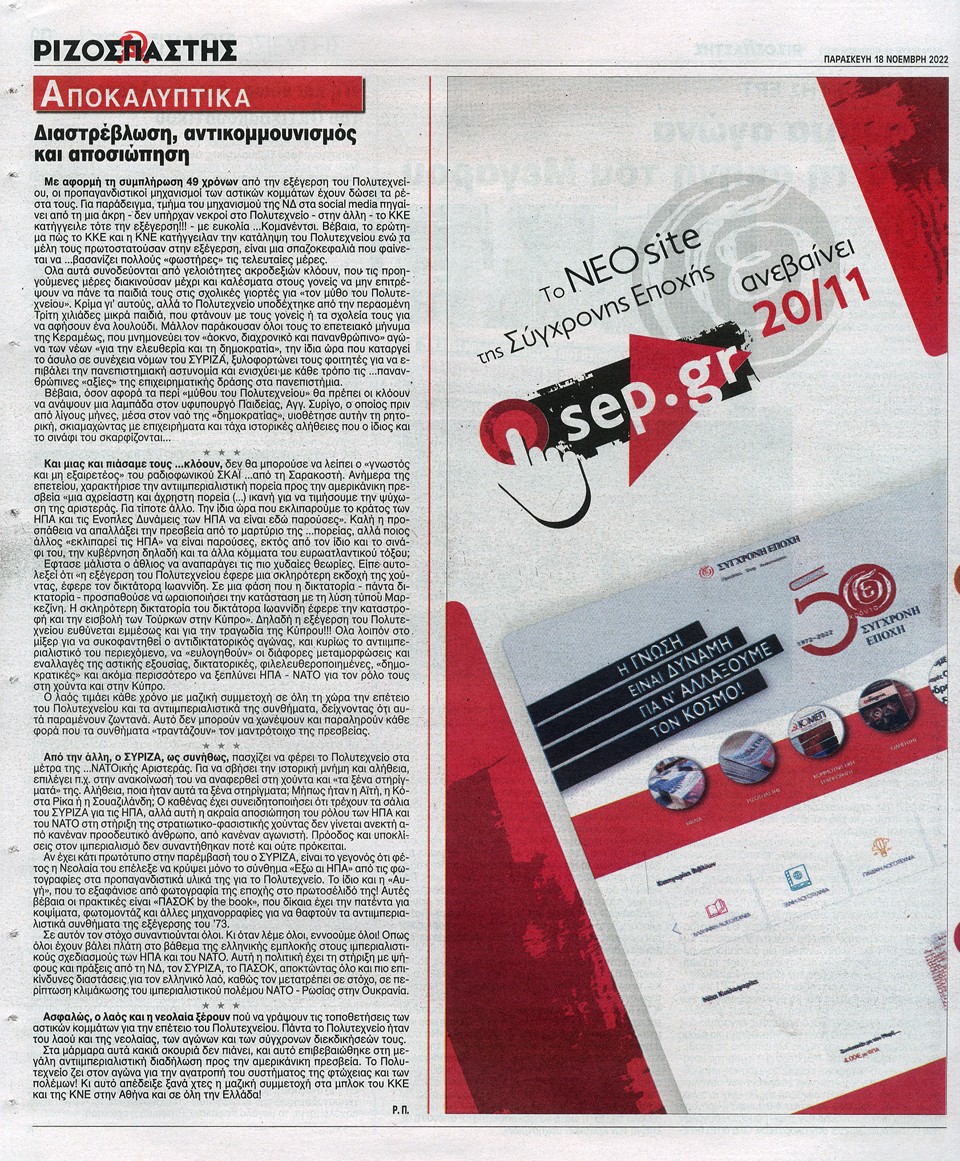 ΡΙΖΟΣΠΑΣΤΗΣ - 18 Νοεμβρίου 2022