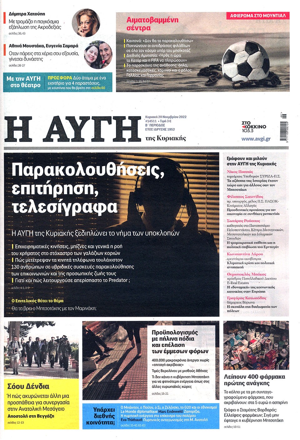 Η ΑΥΓΗ ΤΗΣ ΚΥΡΙΑΚΗΣ - 20 Νοεμβρίου 2022