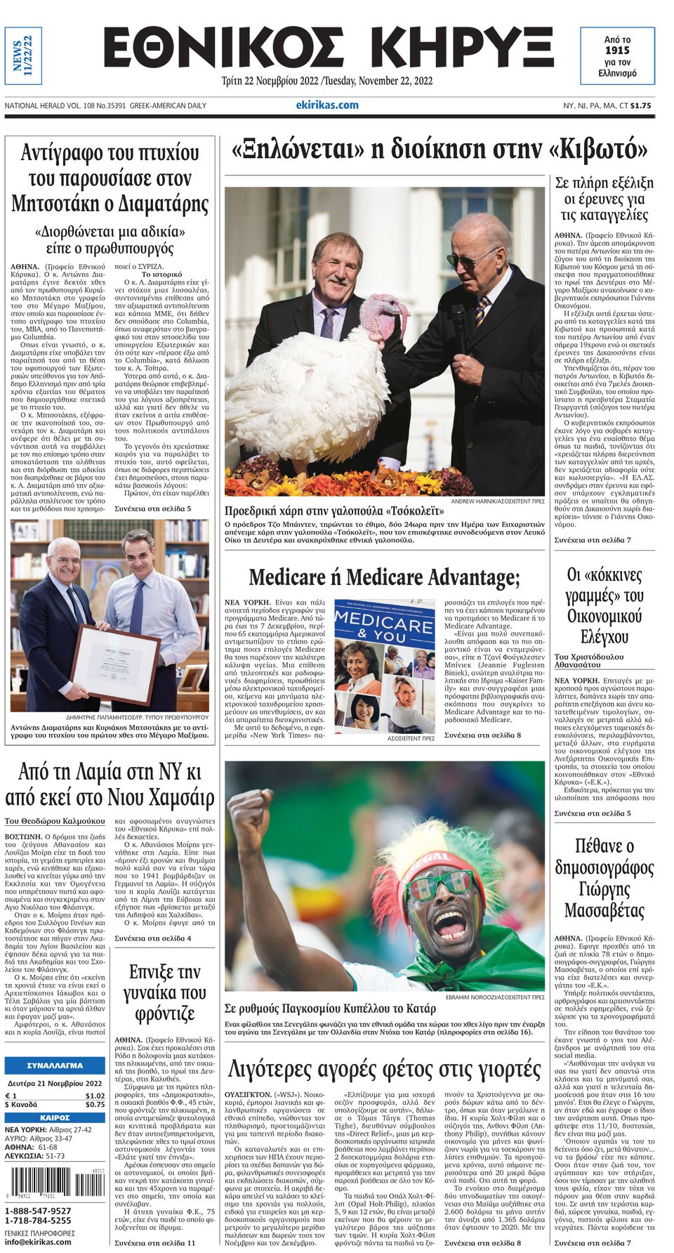ΕΘΝΙΚΟΣ ΚΗΡΥΞ - 22 Νοεμβρίου 2022