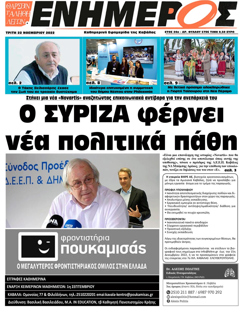 ΕΝΗΜΕΡΟΣ - 22 Νοεμβρίου 2022