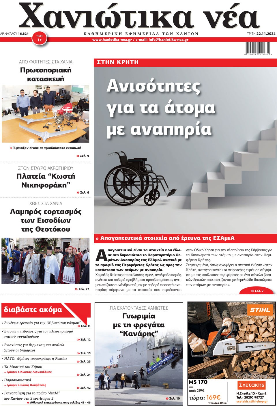 ΧΑΝΙΩΤΙΚΑ ΝΕΑ - 22 Νοεμβρίου 2022