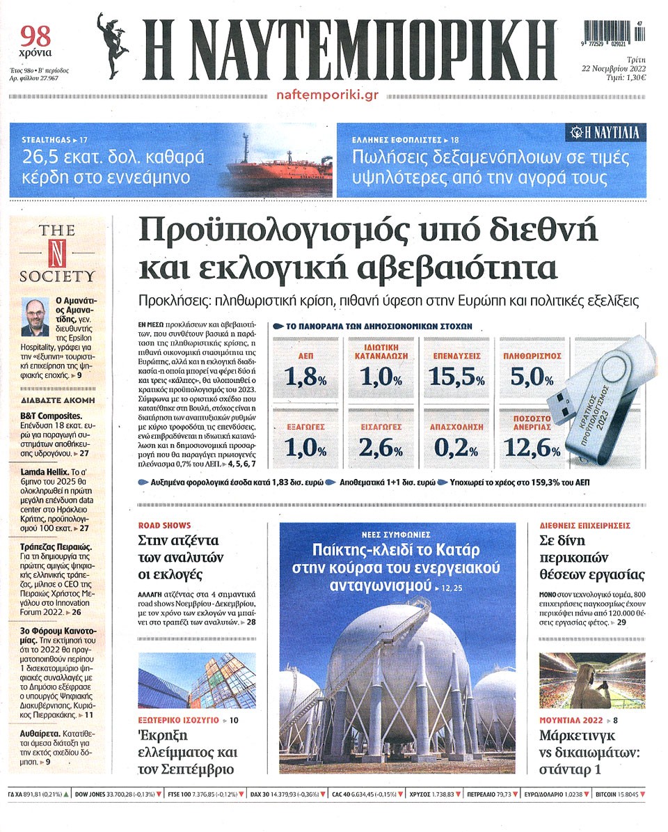 ΝΑΥΤΕΜΠΟΡΙΚΗ - 22 Νοεμβρίου 2022