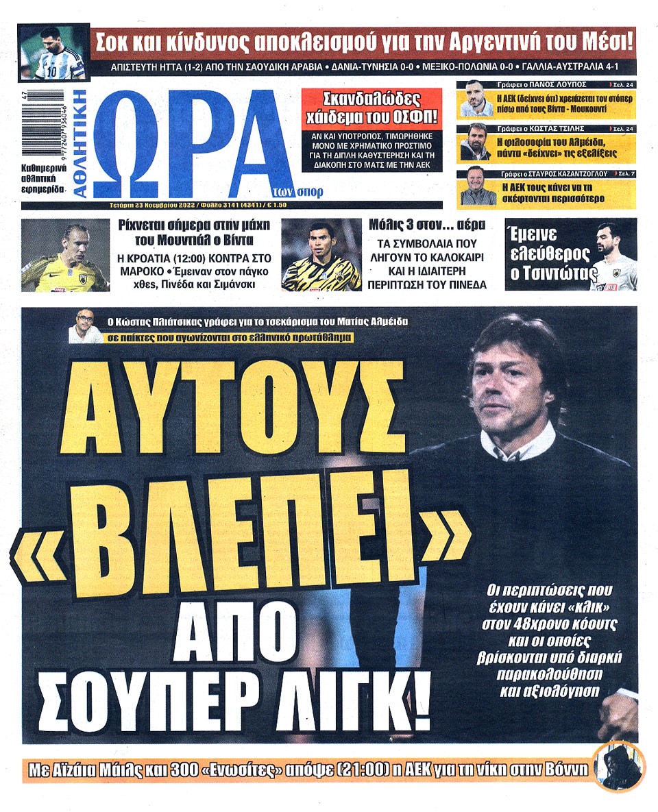 ΑΘΛΗΤΙΚΗ ΩΡΑ ΤΩΝ ΣΠΟΡ - 23 Νοεμβρίου 2022