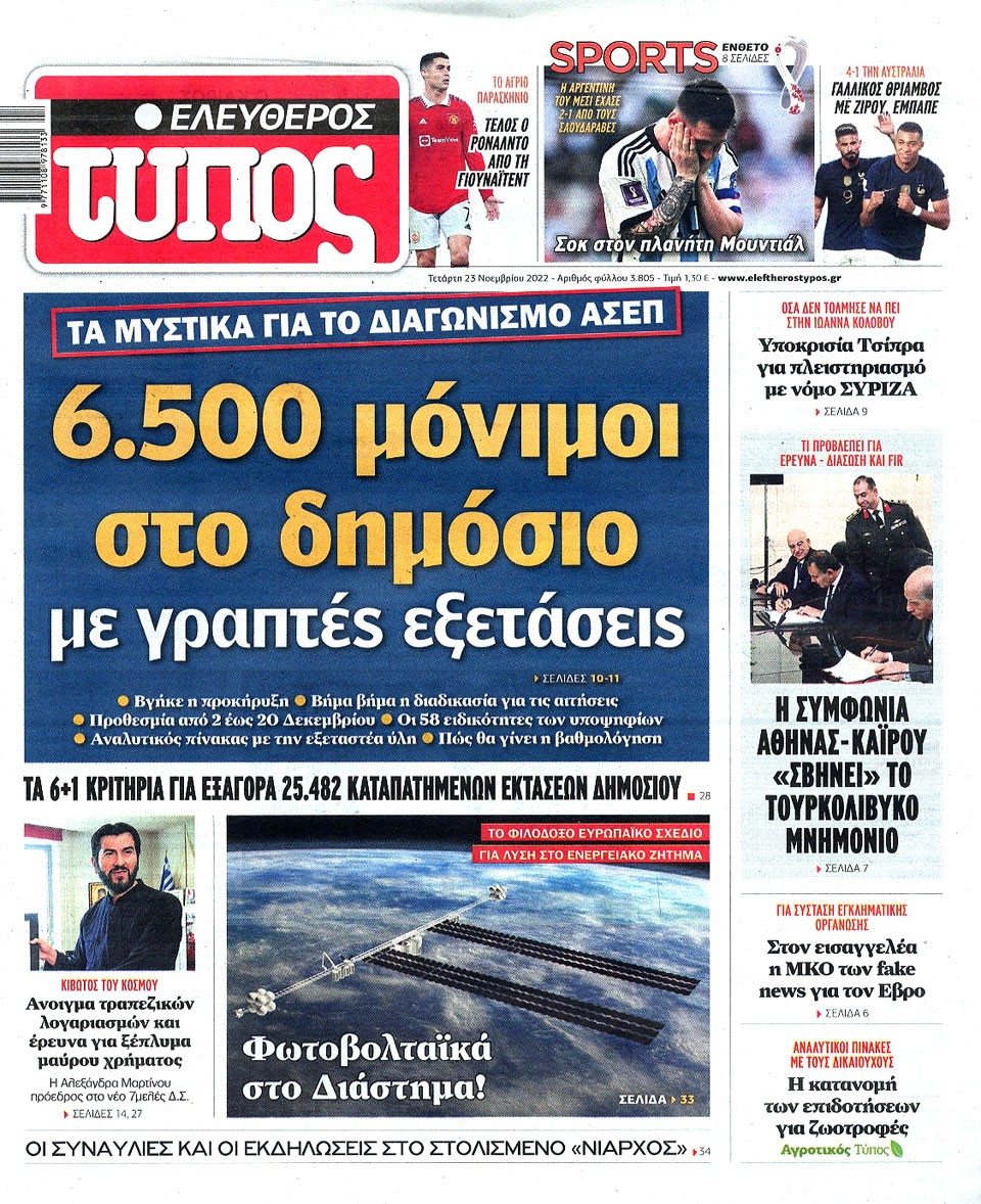 ΕΛΕΥΘΕΡΟΣ ΤΥΠΟΣ - 23 Νοεμβρίου 2022