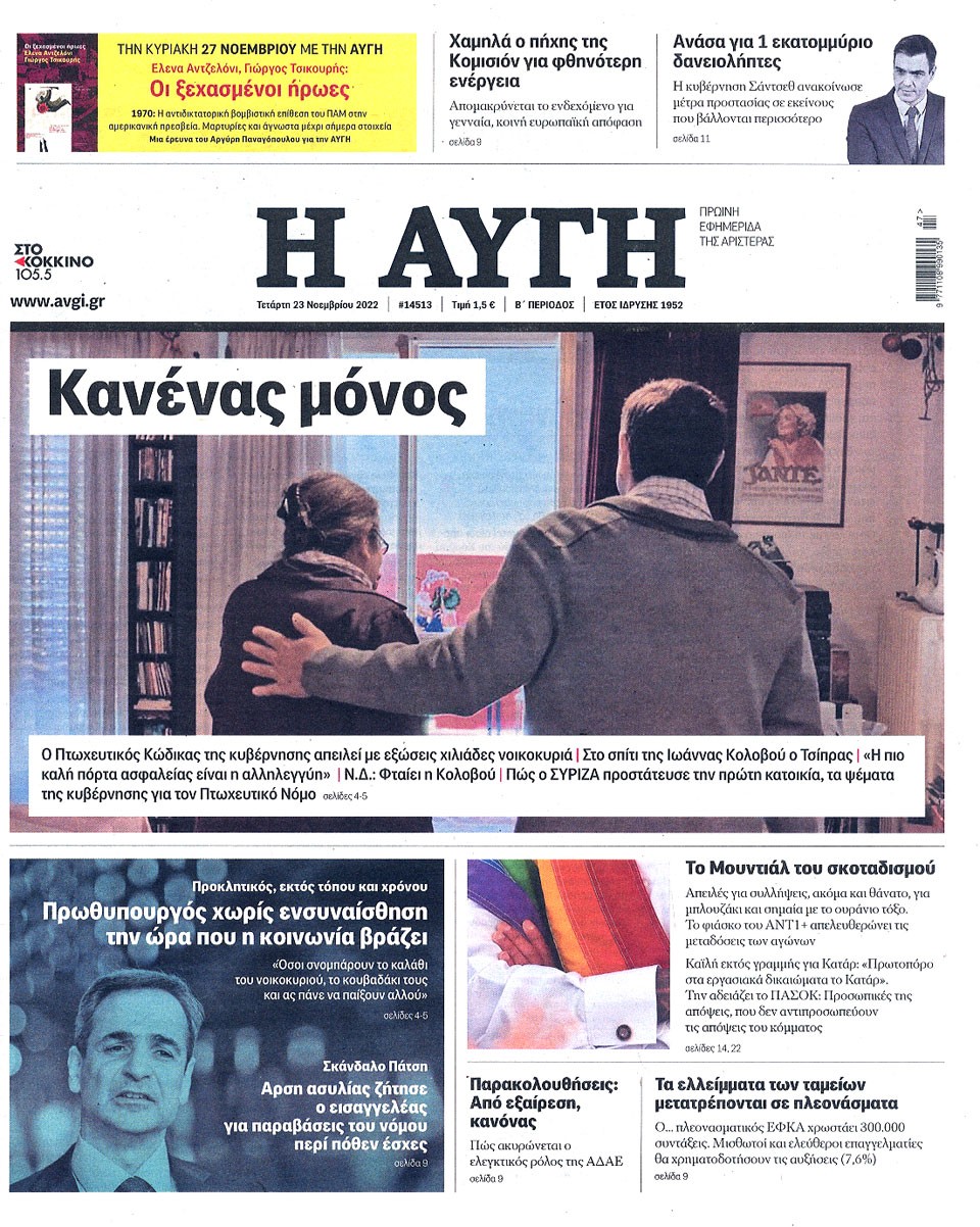 Η ΑΥΓΗ - 23 Νοεμβρίου 2022