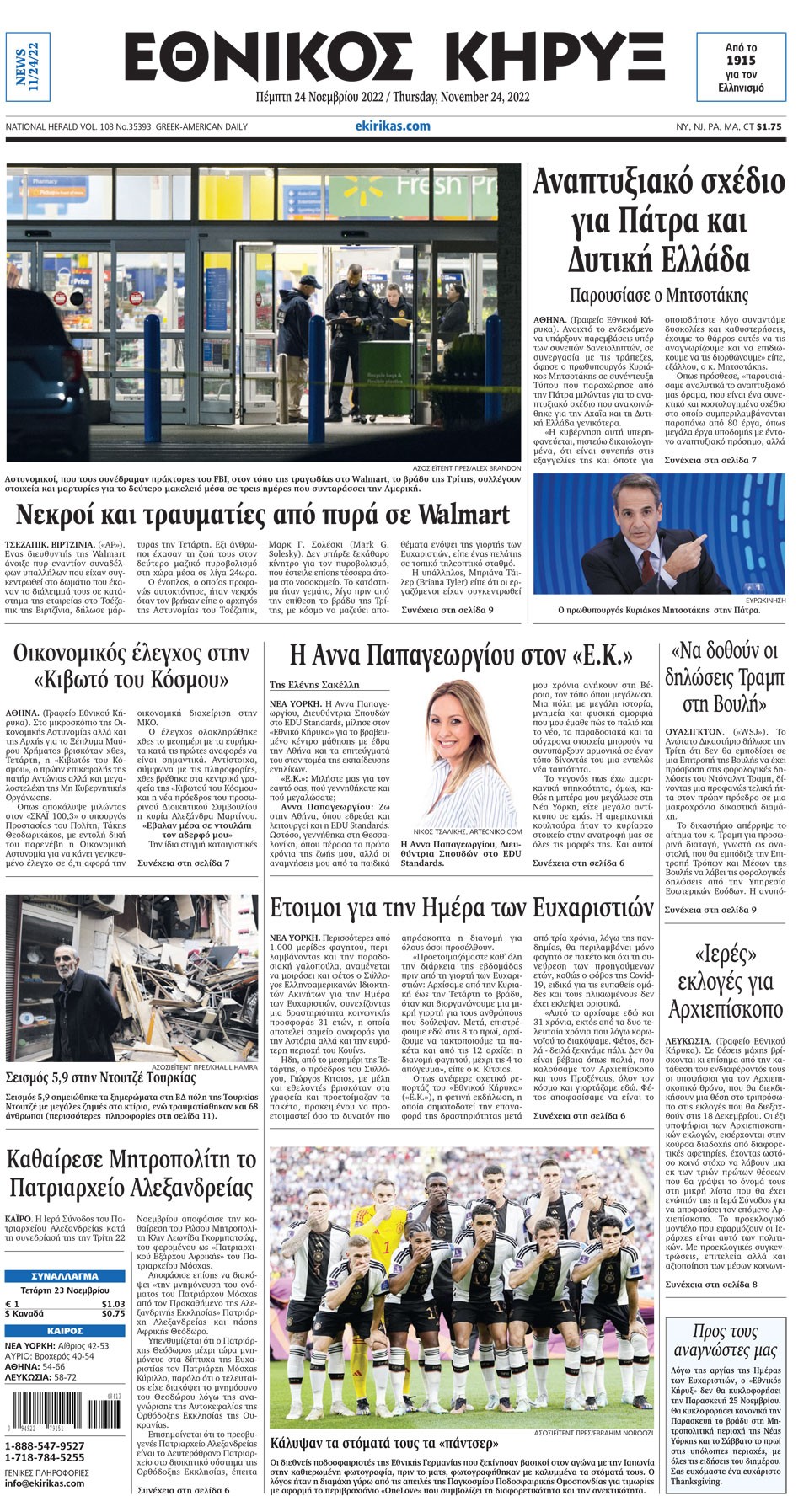 ΕΘΝΙΚΟΣ ΚΗΡΥΞ - 24 Νοεμβρίου 2022