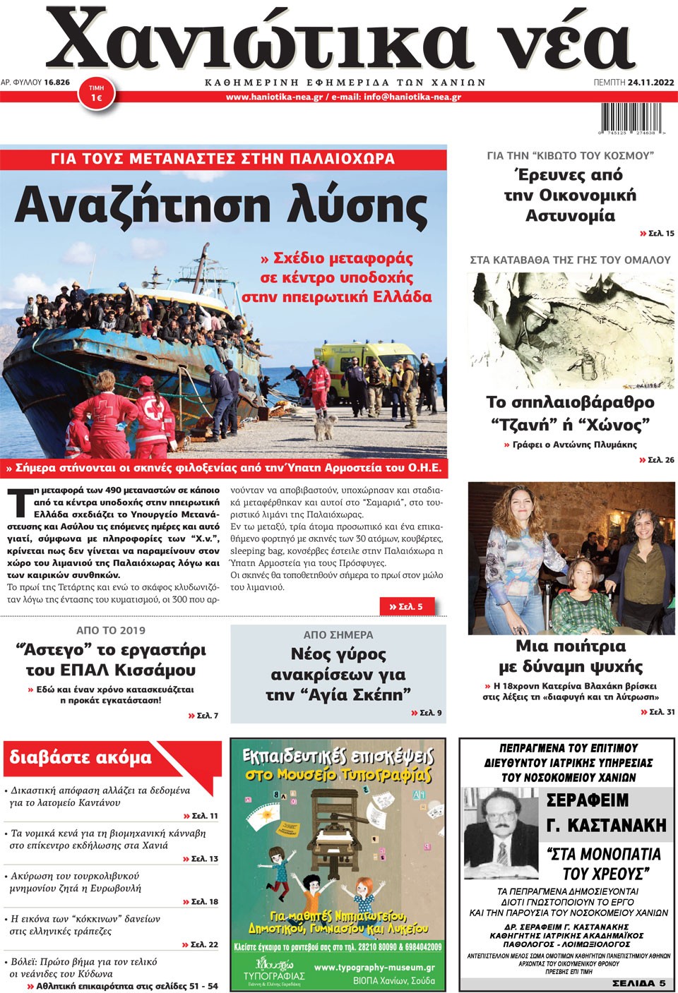 ΧΑΝΙΩΤΙΚΑ ΝΕΑ - 24 Νοεμβρίου 2022