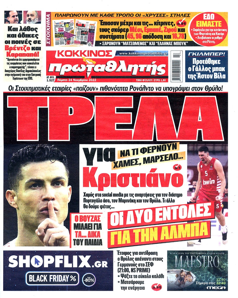 ΠΡΩΤΑΘΛΗΤΗΣ - 24 Νοεμβρίου 2022